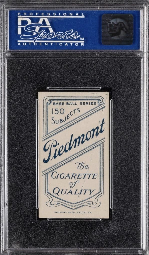 Here’s a beautiful PSA 5 Ty Cobb Bat On Shoulder Card which at first glance i thought seems like it could be worthy of a higher grade, probably a PSA 6 or even a PSA 7. However in examining the back of the card, there appears to be a blue print or ink line. For most T206 collectors, that line means nothing, however for a grader, it puts the card in the penalty box. This card definitely earns eye appeal but probalby not a regrade candidate.