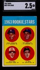 The 1963 Topps Rookie Stars cards marked the second year that Topps produced the multiplayer rookie cards.