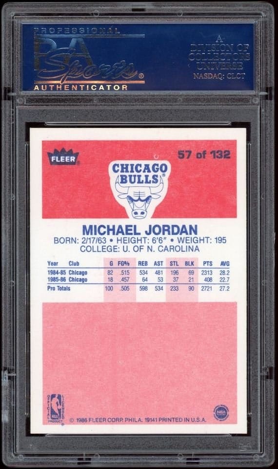 Looks good, checked the PSA Cert number on PSA website and the card has sold at auction multiple times in past several years and the card images line up exactly to what is shown on past auction sales. In addition the back top of the card has a white print dot which is definitely indicative of a real Jordan rookie...
