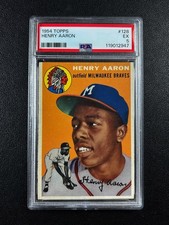 With the unfortunate passing of baseball great Hank Aaron, there has been a lot of buying activity with his 1954 Topps rookie card. The 1954 Topps baseball set is notorious for its brightly colored backgrounds, with the in-action photo of the player in the corner and a full-size portrait image of the player. The card has white borders on the left, right, and bottom of the card. Note how the orange background extends to the top of the card. Be careful when buying 54 Topps Aaron rookie cards, as there are a ton of fakes out there. Be sure to see our guide on authenticating Aaron rookie cards.