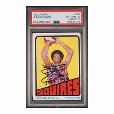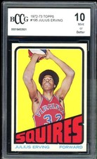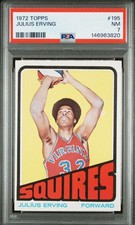 Julius Erving’s official rookie card is his 1972 Topps #195 card. A perfect gem-mint copy of the card (PSA or SGC 10) is worth, on average, between $10,000 to $13,000.