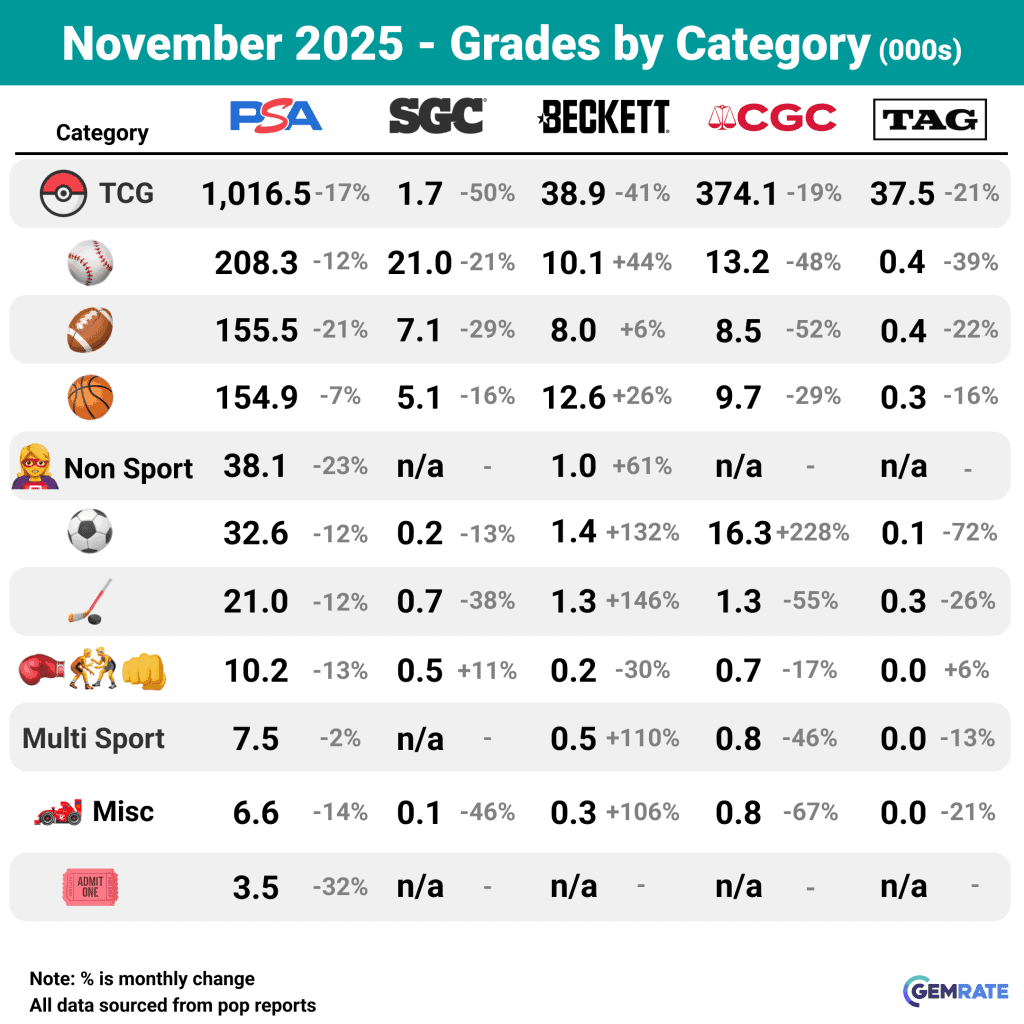 As a result, Collectors now owns PSA, SGC, and Beckett, which, according to GemRate data, rank as the #1, #3, and #4 grading companies in the hobby by volume.
