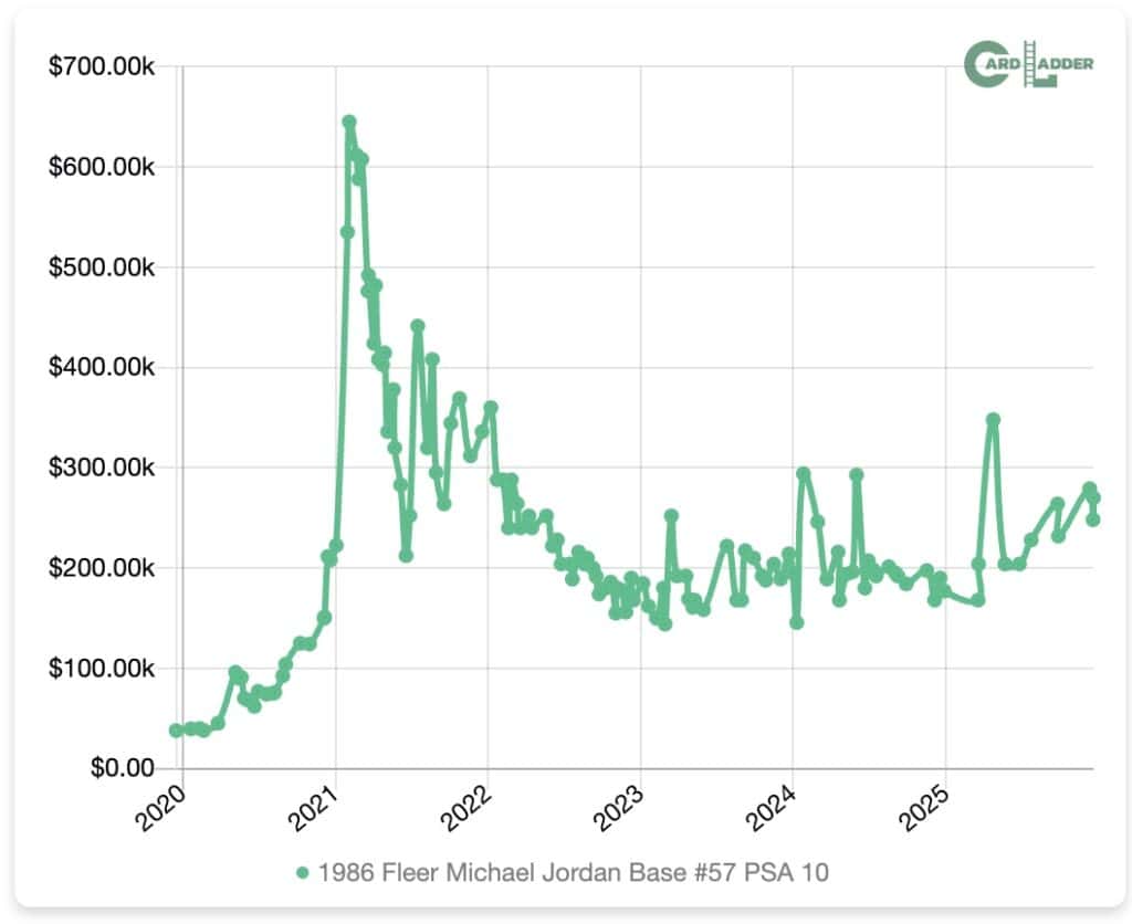 In 2021, a PSA 10 Fleer Jordan sold for $738,000 at the height of the pandemic card boom.