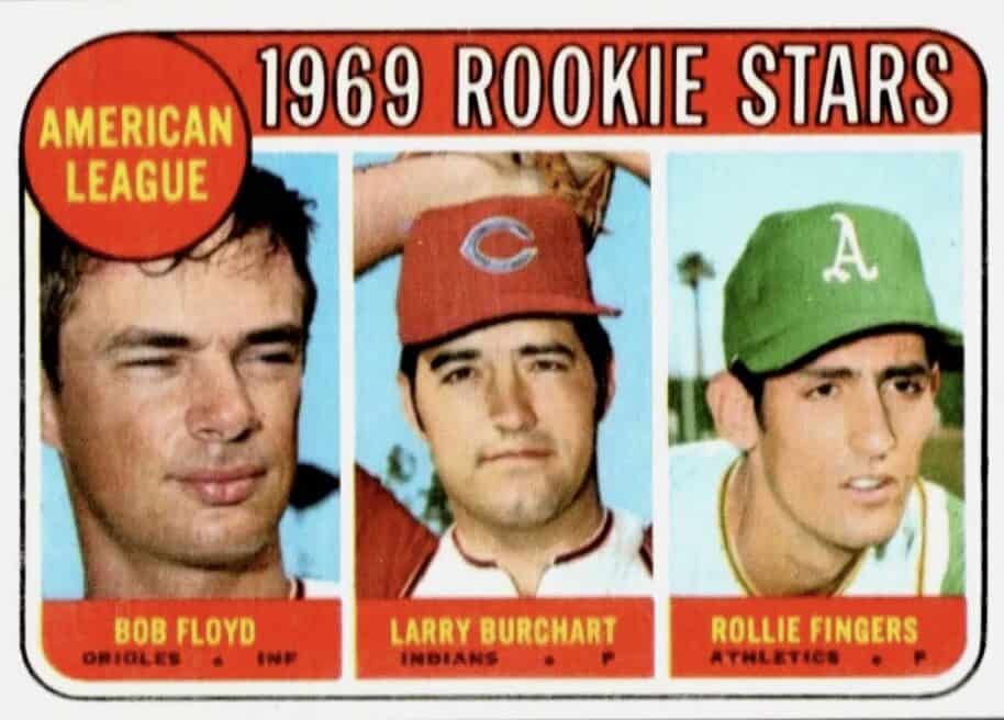 The 1969 Topps high-number series includes highly desirable cards like the Rollie Fingers (#597) rookie card. Fingers’ rookie card in PSA 8 condition is worth about $250, with centered examples commanding higher prices.