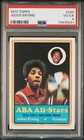 A nice copy, usually a PSA 6 to PSA 7 can be found for around $100. Again, not rare, but still, Walton’s rookie is a cornerstone for vintage 70’s basketball cards.