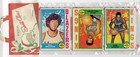 Throwing out a bit of an oddball here– the 1971 Topps Sticker set isn’t really all that hotly demanded by collectors, but if we consider that collectors go bananas for sticker cards of star players (see 86 Fleer Jordan sticker) and three panel cards (see Bird/Magic rookie) then maybe this one should have a spot in a vintage basketball collection? Not only do you get Alcindor, but also a panel for HOFer Connie Hawkins.